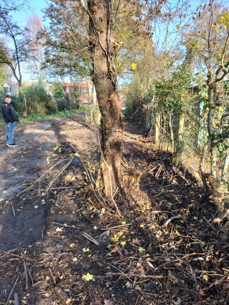 Op complex Aardenhoek 1 is het pad aan de achterzijde (tussen A1 en A2) opgeschoond zodat er een nieuw hekwerk geplaats kan worden.