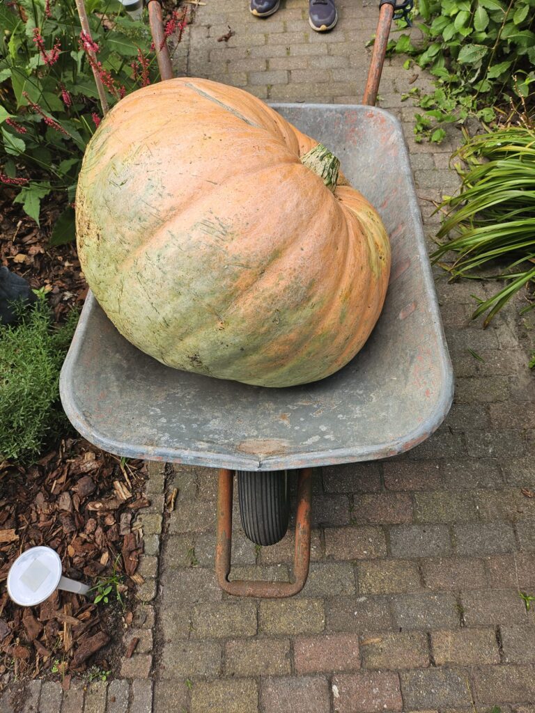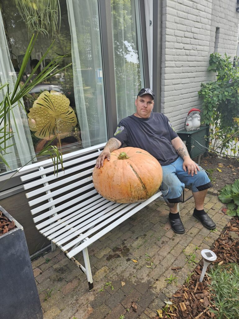 Richard Meijvis heeft op complex Wisselaar bijzonder succes met zijn manier van tuinieren. Deze pompoen weegt 35-40 kilo!