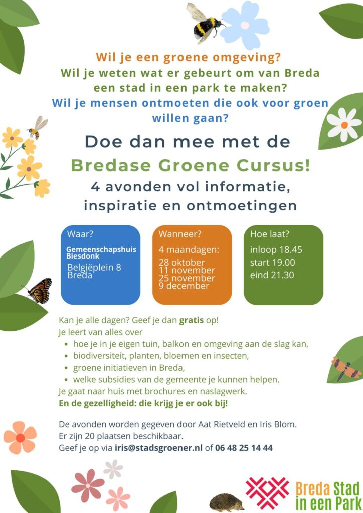 Ook wordt er binnenkort een vlinder cursus gegeven door de KNNV Breda: kijk op Home – KNNV | Afdeling Breda
